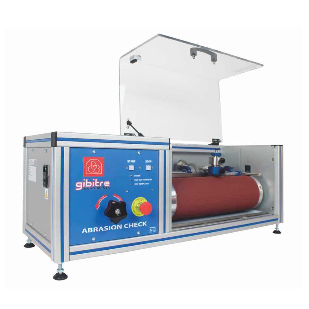 Тестер стирання гуми з обертовим барабаном виробництва Gibitre Instruments, Італія. Випробування на стирання дає порівняльну оцінку стійкості до стирання зразків із вулканізованої гуми, пластику та інших матеріалів. Випробування на стирання проводяться відповідно до ISO 4649, DIN 53516, ASTM D 5963, AS 1683.21, EN 12770. Тест на образивне стирання проводиться на сертифікаованому абразивному папері та на обертовому барабані з налаштованим відповідно до стандартів циклом випробувань. Абразиметр ABRASION CHECK проходить заводське калібрування відповідно до ISO 4649 по ключовим параметрам стандарту, таким як оберти, бічне зміщення, час випробування, вертикальне навантаження, абразивність випробувального паперу.