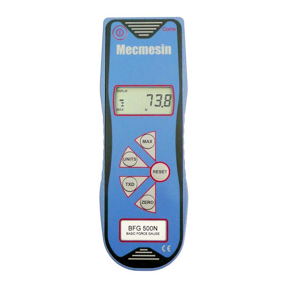 Базовий динамометр BFG виробництва Mecmesin (Великобританія) має чіткий цифровий РК-дисплей з підсвіткою і має значні переваги в продуктивності порівняно з механічними динамометрами. Динамометр BFG використовується, де потрібно тримати точні та швидкі результати в випробування в основному в ручному режимі.