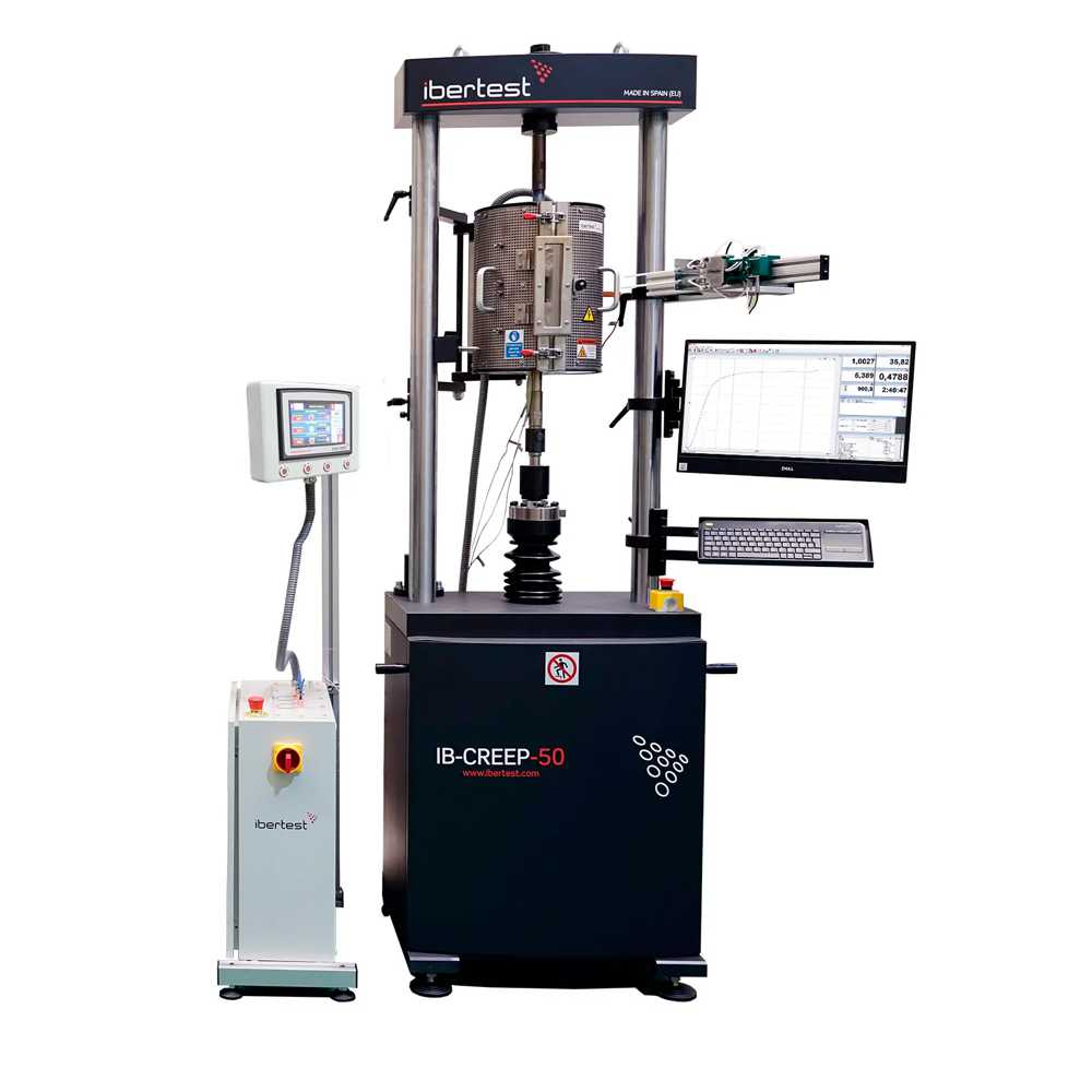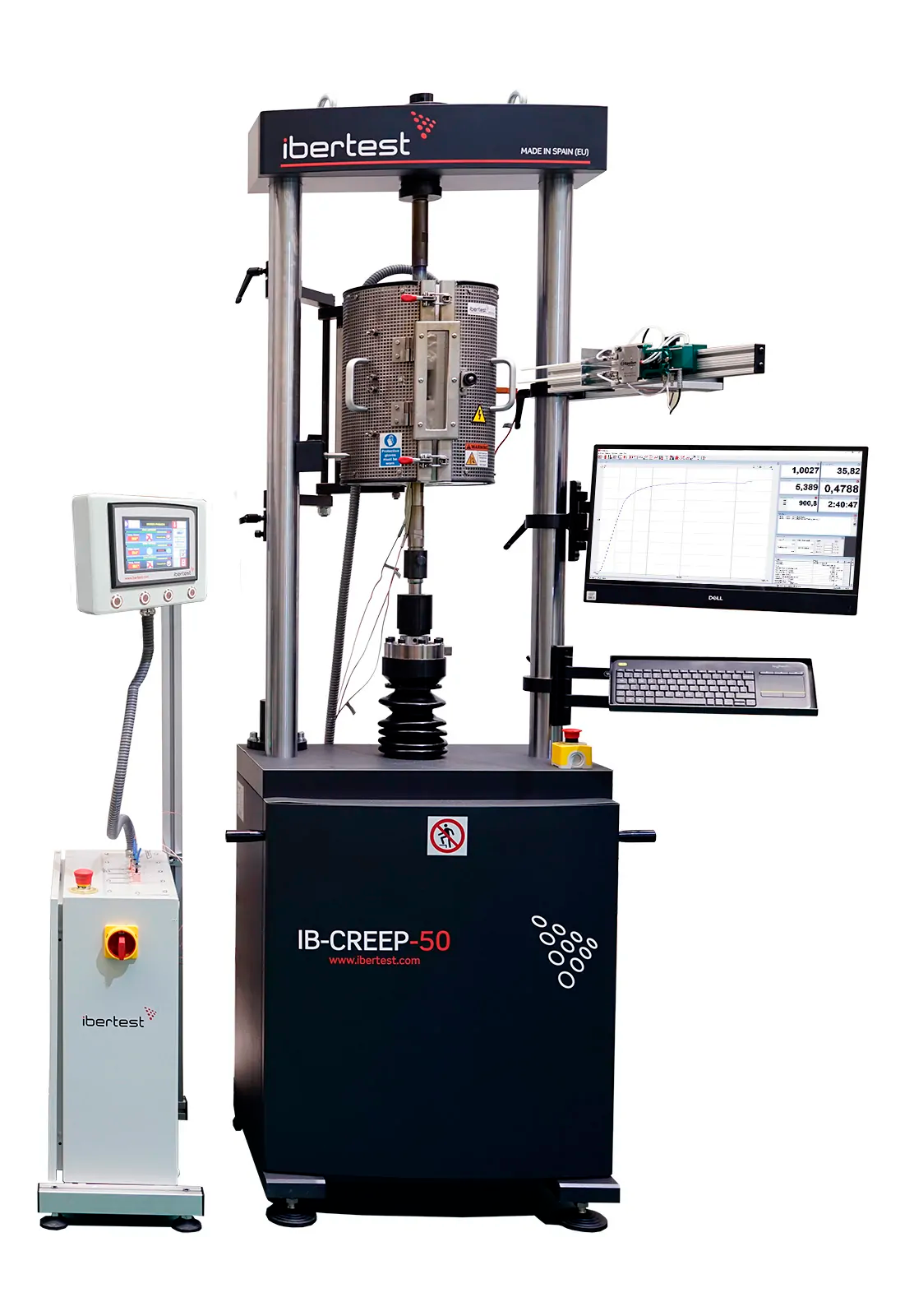 Машина для випробування на повзучість IB-CREEP – це електромеханічна машина, спеціально розроблена для випробувань на повзучість, релаксацію, низьку втому та подібні випробування. Випробувальна машина сконструйована для проведення тестів відповідно до стандартів: ISO 204, ASTM E139 та аналогічниіх. Кострукція IB-CREEP спеціально розроблено IBERTEST для забезпечення точності та надійності випробувань на повзучість та вклбючає в себе комлексне рішення – випробульну машину, піч та контроллер.