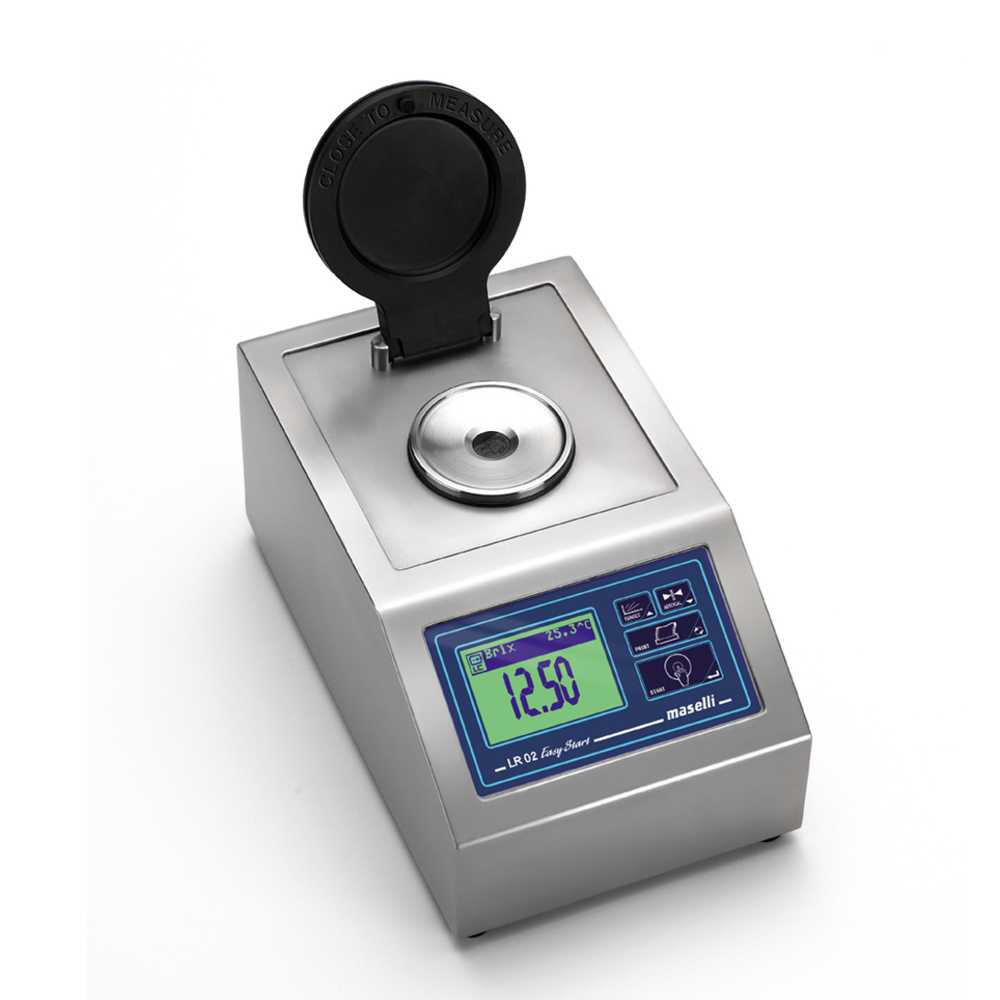 Рефрактометр LR-02 був розроблений італійською компанією Maselli для точного вимірювання з можливістю експлуатації як в лабораторії, так і на виробничій лінії. Саме точність, надійність, компактність та простота в використанні визначають його ключові можливості. Завдяки живленню від акумулятора та ручці для транспортування рефрактометр легко переносити та використовувати без підключення до джерела живлення. Рефрактометр укомплектовано водонепроникною клавіатурою та завдяки конструкції з нержавіючої сталі рефрактометр можна безпечно використовувати безпосередньо на виробництві. Просто опустивши кришку, не натискаючи жодної кнопки, рефрактометр LR-02 «Easy Start» вимірює показник заломлення зразка, обчислює його концентрацію (Brix або визначену користувачем шкалу), відображає інформацію на РК дисплеї з підсвічуванням та може відправляти дані на термо-принтер або ПК. Завдяки сучасним технологіям у розробці, таким як сапфірова призма, довговічне світлодіодне джерело світла та цифровий оптичний датчик CCD з високою роздільною здатністю, гарантується висока точність вимірювання та надійність у використанні.