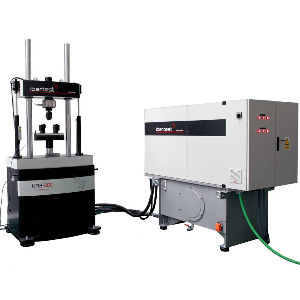 Гідравлічна випробувальна машина UFIB для динамічних тестів виробництва компанії Ibertest забезпечує точність та надійність у динамічних випробуваннях. Серія UFIB може налаштовуватись відповідно до майже будь-якого розміру зразка для випробувань, жорсткості матеріалу та динамічних вимог. Машина UFIB  може виконувати різні типи випробувань, такі як динамічне випробування на розтяг, динамічне випробування на стиск, динамічне випробування на стиск і розтяг з переміщенням через нуль. Ці випробування можна конфігурувати з фіксованою або рухомою верхньою траверсою, яка має привід за допомогою бічних гідравлічних циліндрів.
